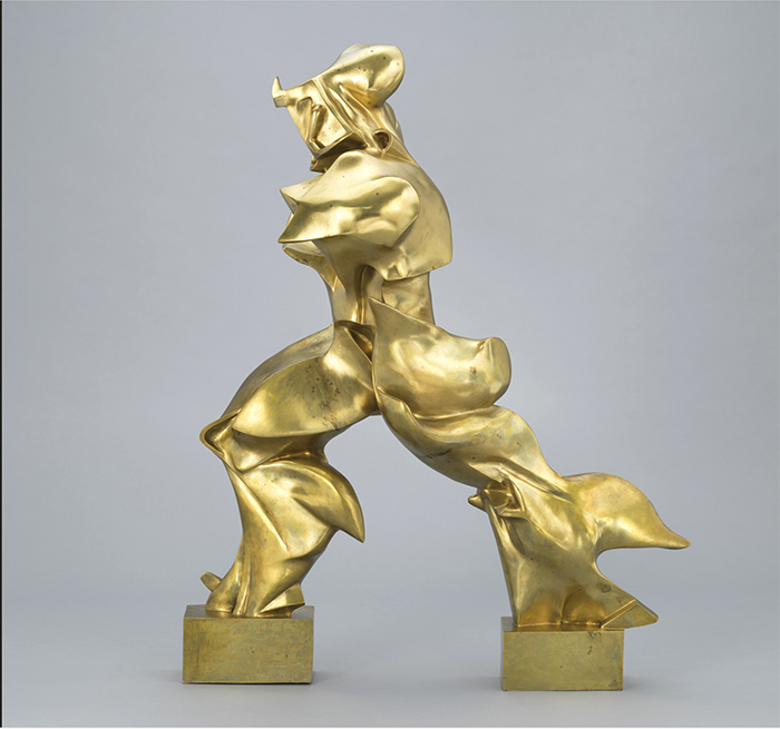 That same year, Boccioni went on to create the sculpture Unique Forms of Continuity in Space (1913) A substantial concretization of Futurism as an approach to the human form. In it, a figure strides forward with the motion of its limbs and body tracking through space sealed into the form of the figure itself. Boccioni writes: