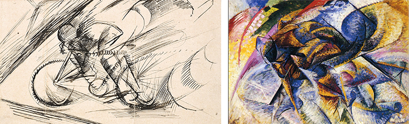 This preparatory sketch shows the abstraction process for Boccioni’s painting Dynamism of a Cyclist (1913)